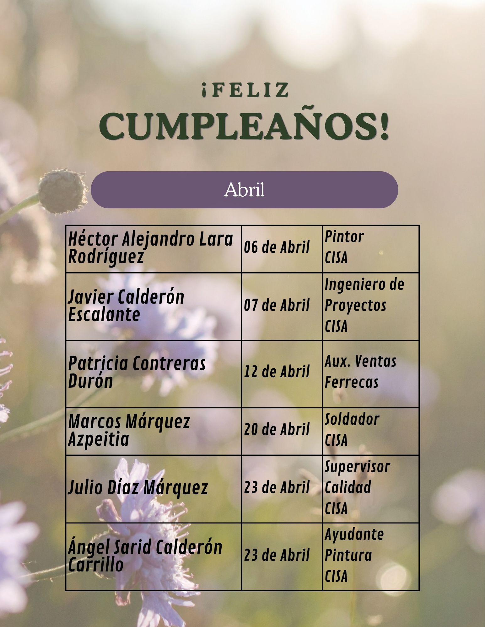 Felicidades a todos los cumpleaneros!